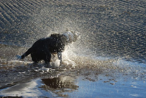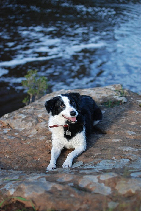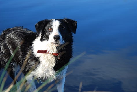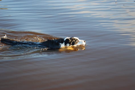 I like the small stories I’ve made with Alice over the past few years. The fact that we only get one round makes them all the more precious. The smell of spring or autumn on the tree-lined path near our house. Her tail in the air, the white flag at the tip signalling happiness. Her two triumphant barks when running down a ball in the yard. The sound of her small, bare paws pounding the earth as she gallops down the side paddock. Her love of water, so much so that we thought she might be part seal.